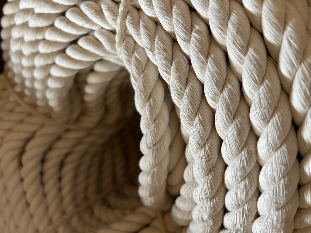 2) Supersoft natural string and rope in 3 mm, 5 mm, 9 mm, 12 mm and 25 mm single twist string; and 3 mm, 4 mm, 5 mm, 15 mm and 30 mm twisted rope. Our Supersoft natural cotton consists of slightly finer individual threads making this our softest macrame string and rope available.
